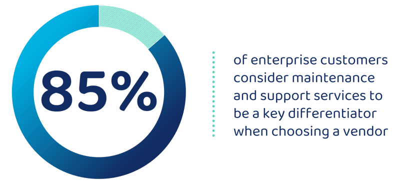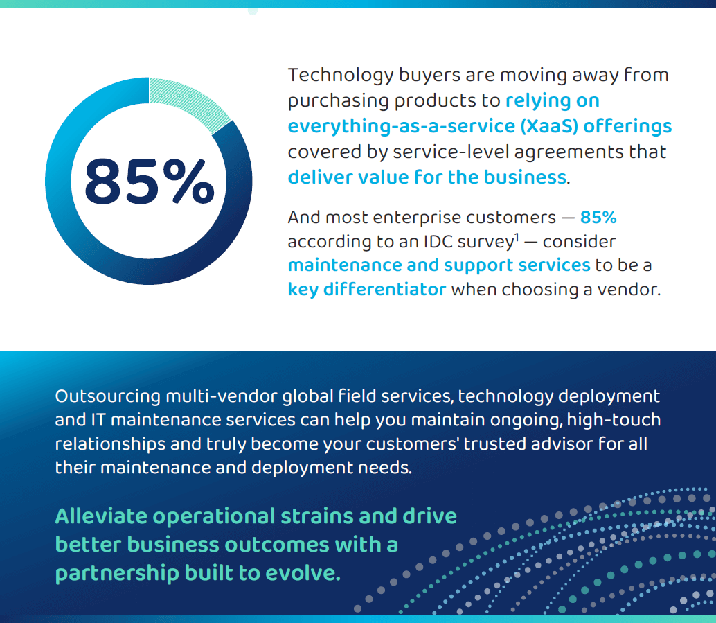 Technology buyers are moving away from purchasing products to relying on XaaS services covered by service-level agreements that deliver value for the business. And most enterprise customers — 85% according to one survey — consider maintenance and support services to be a key differentiator when choosing a vendor.