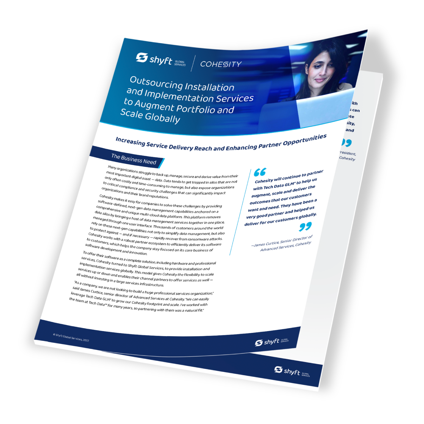 Shyft Global Services has helped us ensure we can deliver for our customers, which included meeting a number of unique challenges during the COVID-19 pandemic. For example, we may need to have a technician go on site to complete service delivery while complying with local travel restrictions and unique facility protocols. Having a services partner with the flexibility to meet these challenges head on ensures that we’re delivering excellent customer outcomes and experiences around the world.”