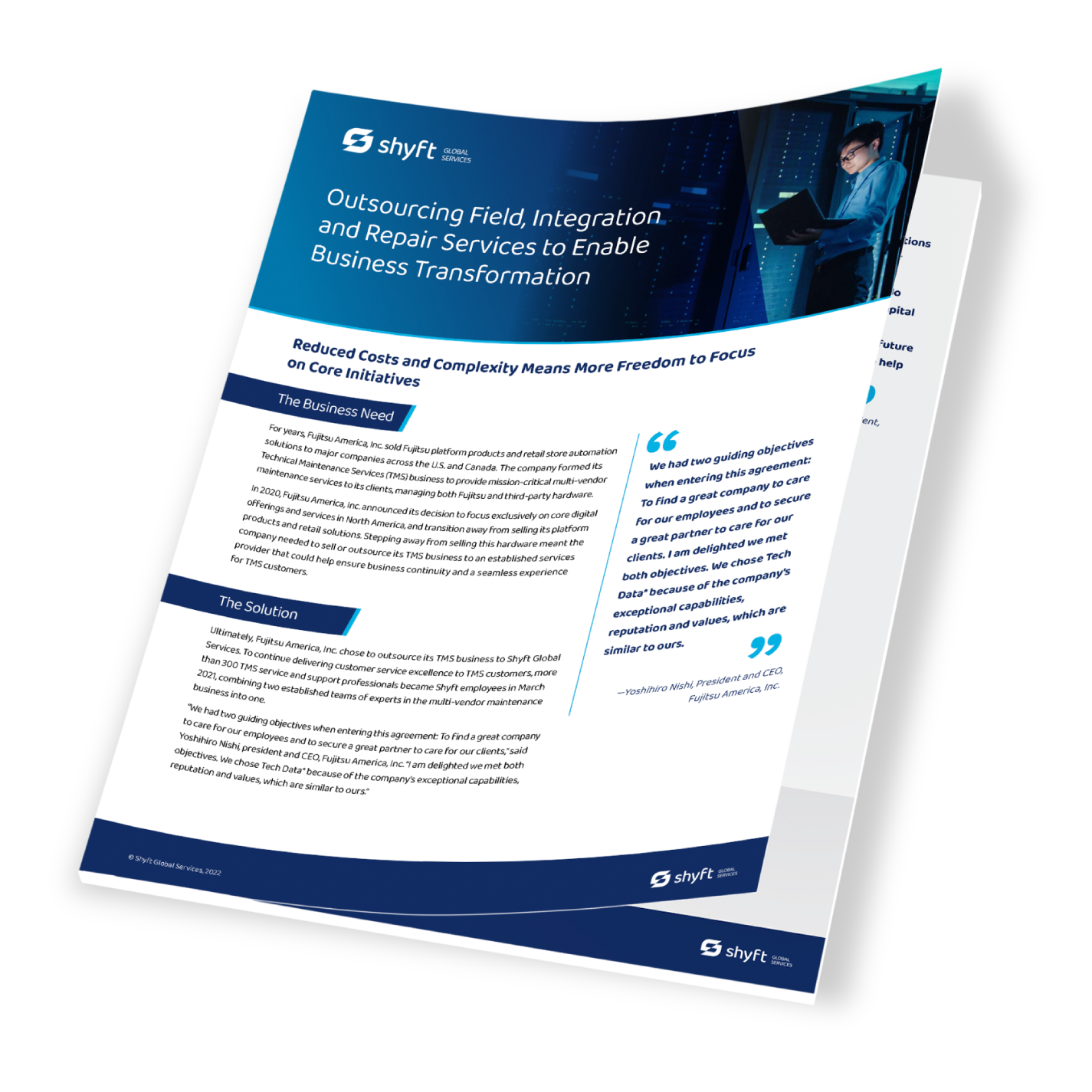 In its transition to focus solely on core digital offerings, Fujitsu America, Inc. found a single global partner to manage its Technical Maintenance Services (TMS) business, which included outsourcing related field, integration and repair services.