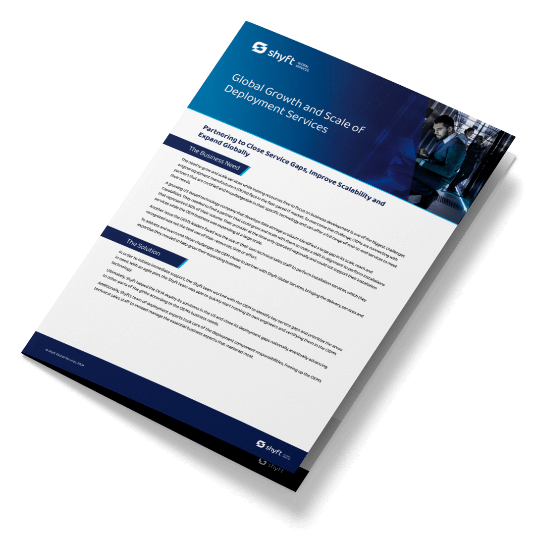 A fast-growing technology company in the data storage market needed an IT deployment partner to help them keep up with installation growth. The company's initial partner did not have the geographic reach they needed, and using internal resources wasn’t an option. Instead, the company partnered with an experienced IT deployment services provider to train resources, close service gaps and focus on critical areas to support the expanding business.