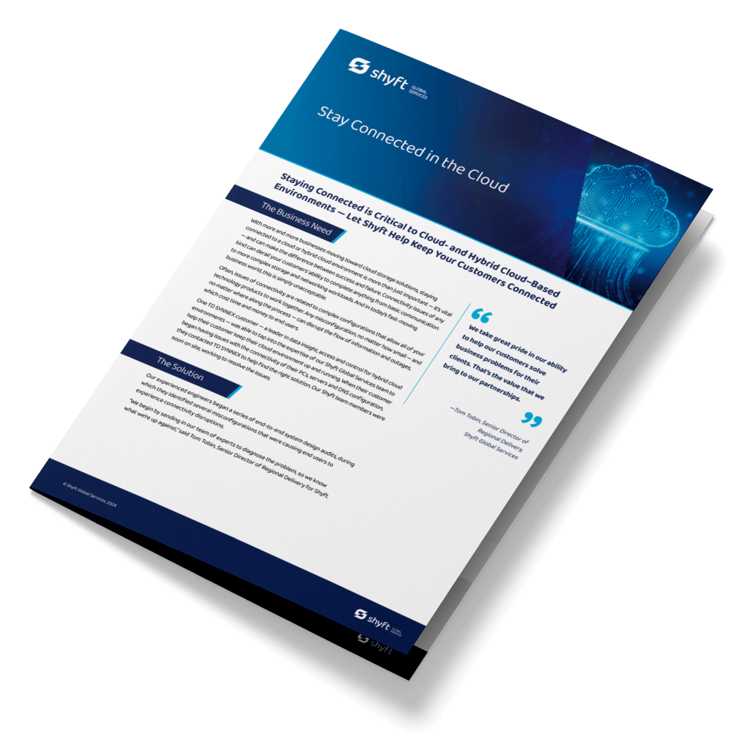 Many companies rely on cloud environments today, so connectivity issues can be damaging to business success. A leader in data management for hybrid cloud environments was experiencing connectivity issues that impaired employee performance. Together with the experienced engineers of a trusted IT deployment services partner, they were able to implement solutions to improve long-term performance and stability.