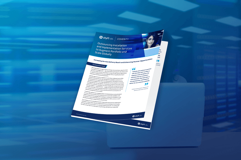 Cohesity wanted to stay focused on its core business of software development while also offering a complete solution, including hardware and professional services. The company chose to partner with Shyft to deliver white-labeled OEM installation services globally, which saved Cohesity and its partners from having to invest in their own services infrastructure.