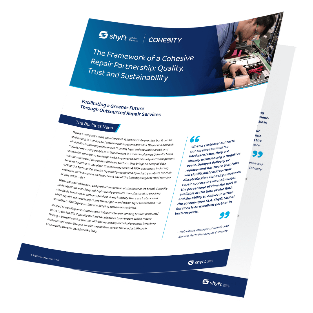 Turning to Shyft Global Services to deliver custom-tailored depot repair services at scale means Cohesity can better support its customers and boost sustainability — all while remaining focused on next-gen product development.