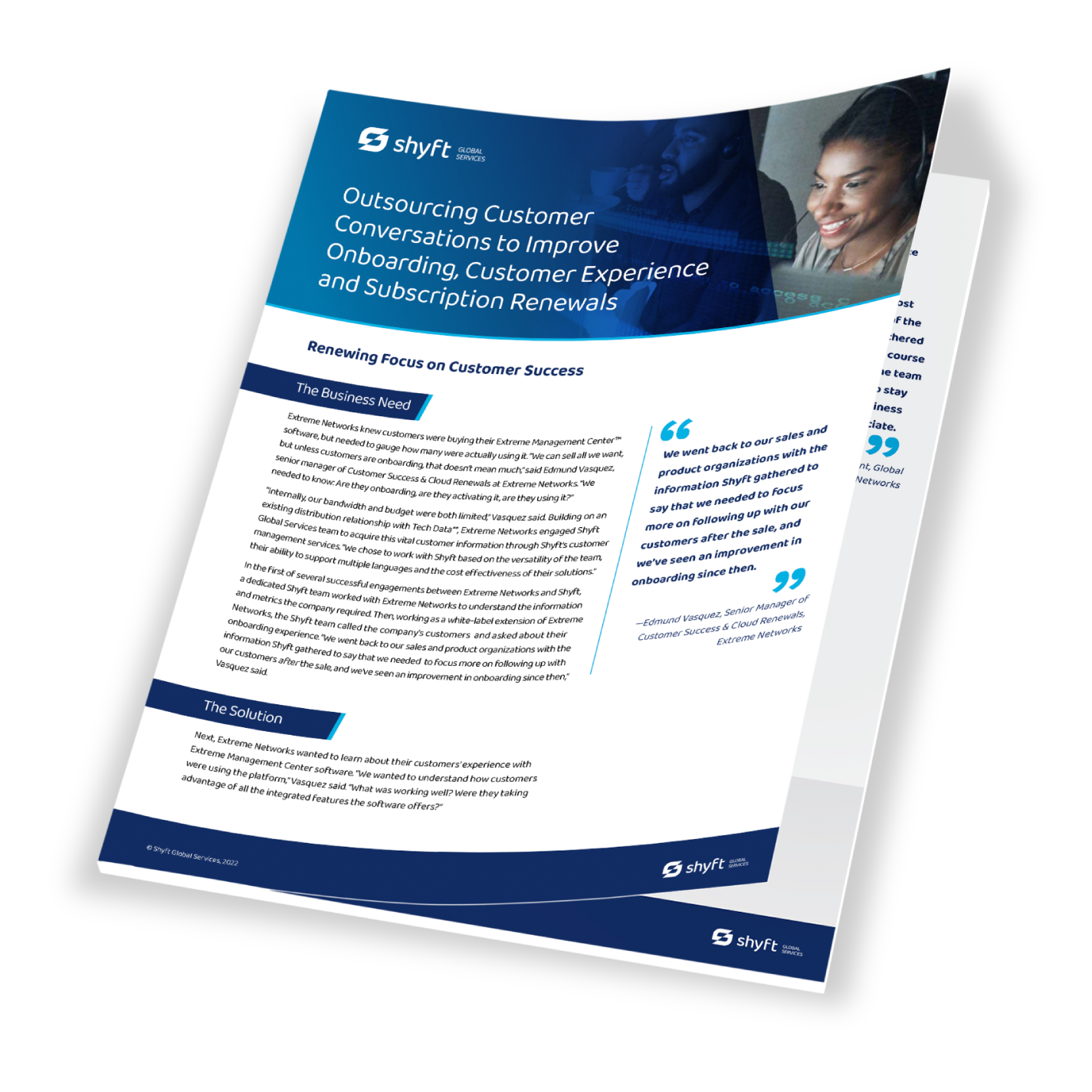 When Extreme Networks first partnered up with Shyft, their team already had a clear understanding of just how important it was to deliver an excellent customer onboarding experience and a thorough subscription renewal process. However, their dilemma was that, with finite resources and limited network equipment, the team could only gather a small amount of meaningful data.