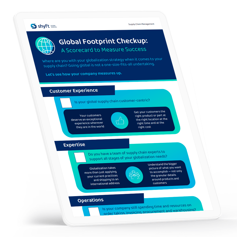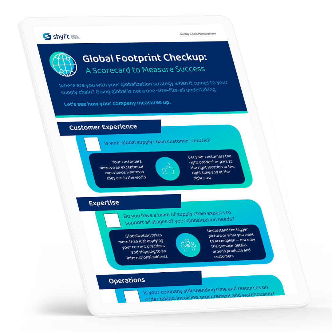 Global expansion with your supply chain isn't a one-size-fits-all implementation. Our "Scorecard to Measure Success" helps you easily see where you're at with globalization. Review the readiness of your: