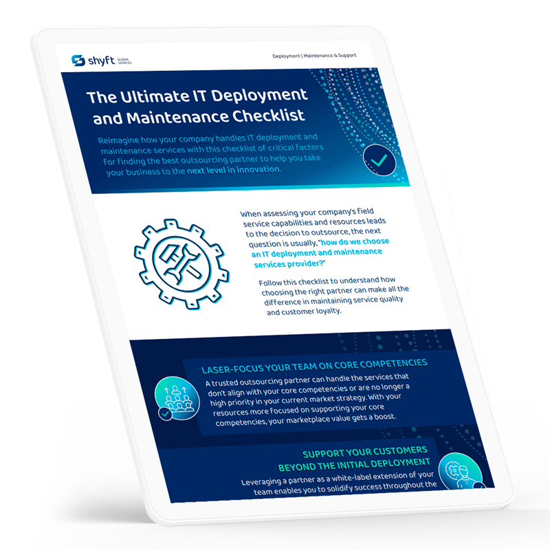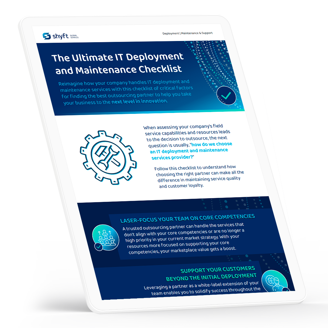 Reimagine the way your company manages its global multi-vendor field services strategy by leaning on the scalability, flexibility, expertise and capabilities of an outsourced services partner. But with many options to choose from, where do you start when narrowing down the selection pool of partners? This checklist serves as your guide to evaluating potential partners to handle your technology deployment and IT maintenance and support services.