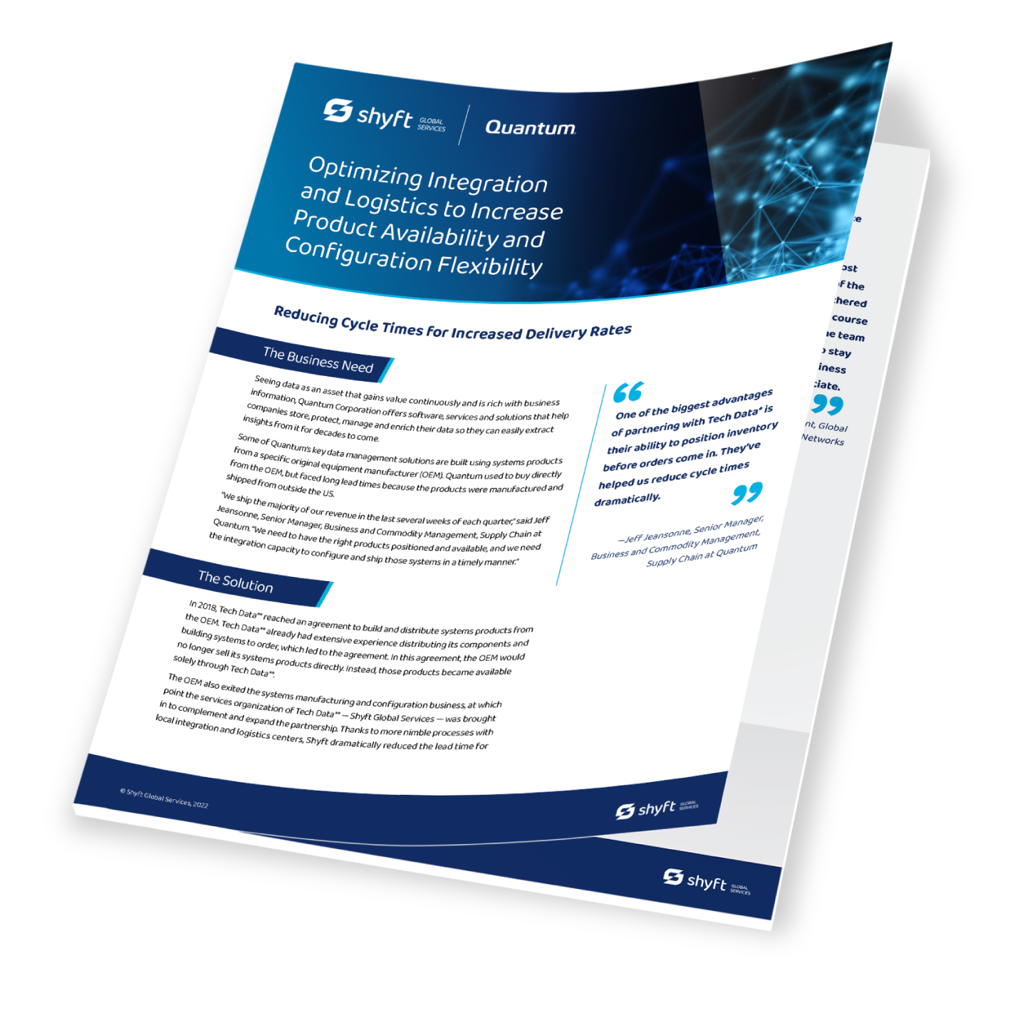 The data-focused company needed a partner who could help with product availability and integration capabilities to configure and ship systems in a timely manner. They found that expertise and experience in Shyft Global Services, and by partnering with the leading IT services provider, Quantum was able to: